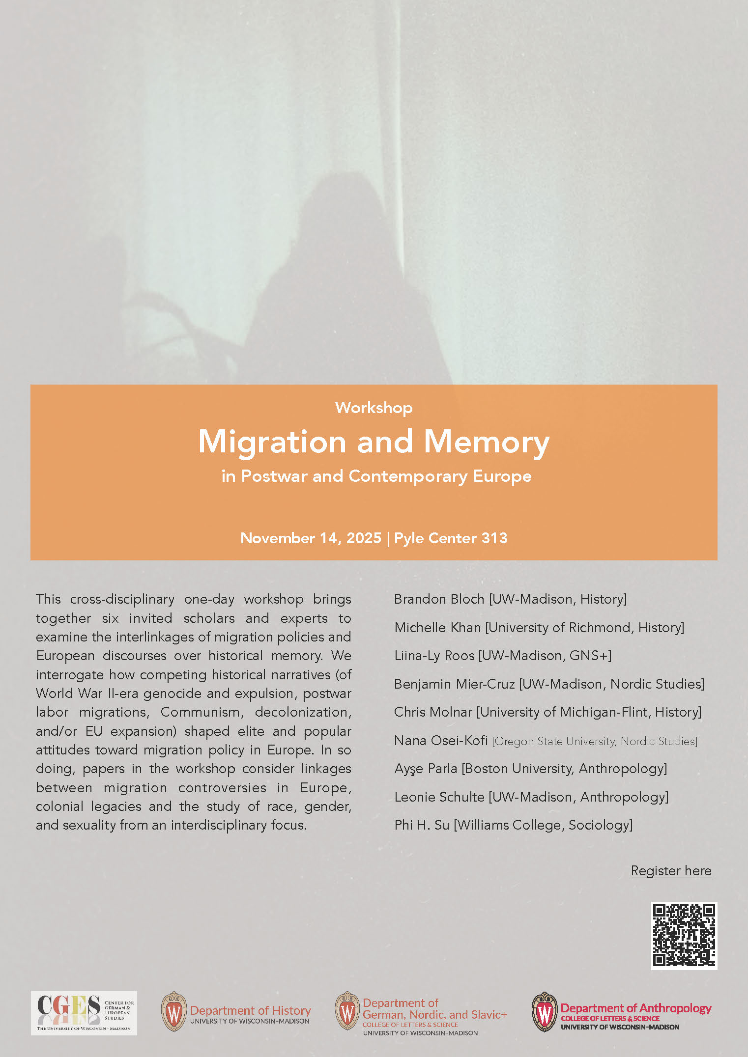 Event Poster: Migration and Memory in Postwar and Contemporary Europe. November 14, 2025. Pyle Center room 313.Migration and Memory in Postwar and Contemporary Europe